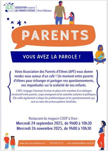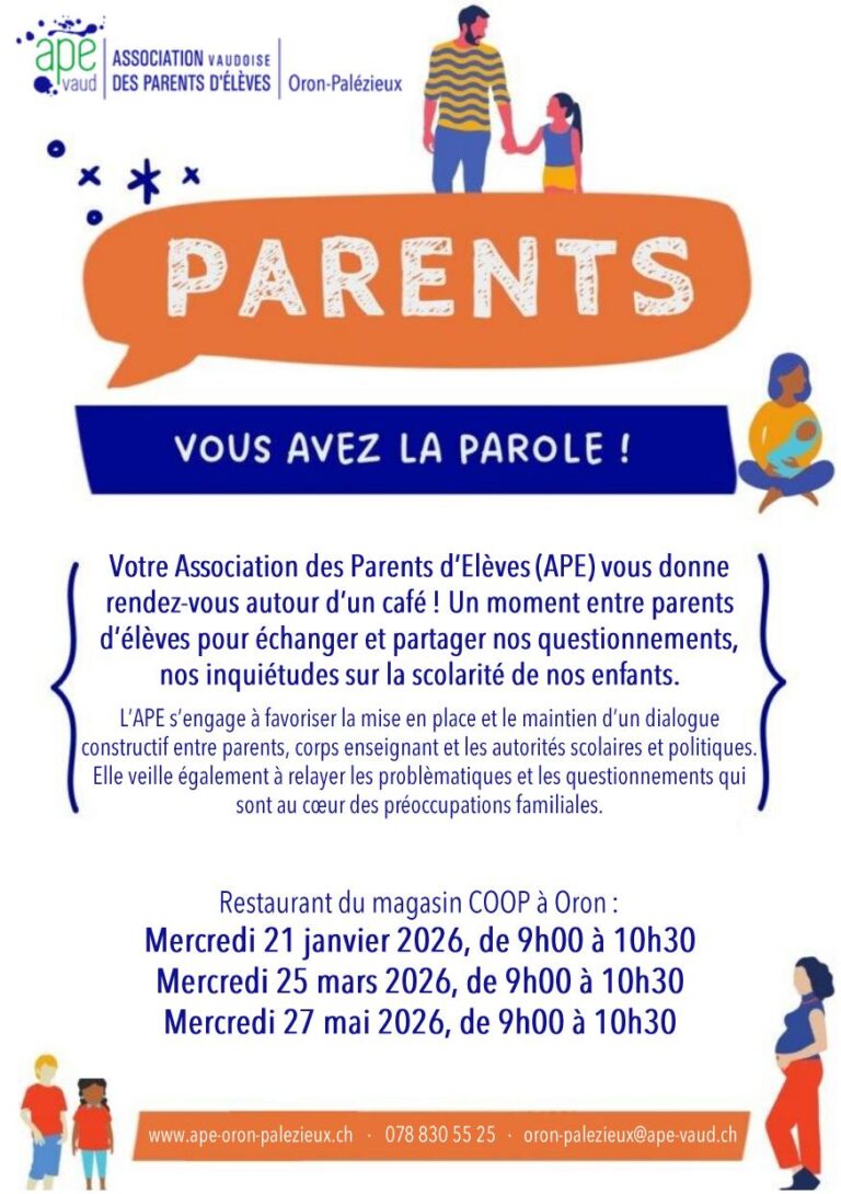 L’Association de Parents d’Elèves regroupe et représente tous les parents des élèves scolarisés dans l’Etablissement Primaire et Secondaire (EPS) du district Oron-Palézieux.
